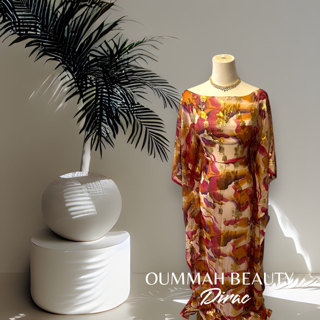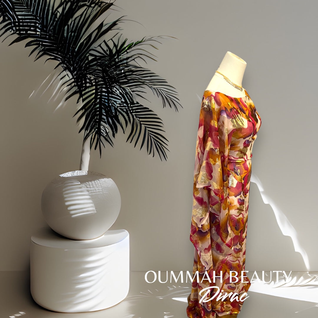 Sublime dirac de cocktail aux nuances raffinées orange, rose et or, idéal pour une occasion spéciale ou une soirée élégante.